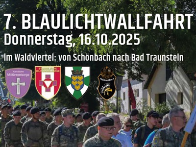 Einladung zur 7. Blaulichtwallfahrt von Militärkommando NÖ, Blaulichtorganisationen und Militärseelsorge