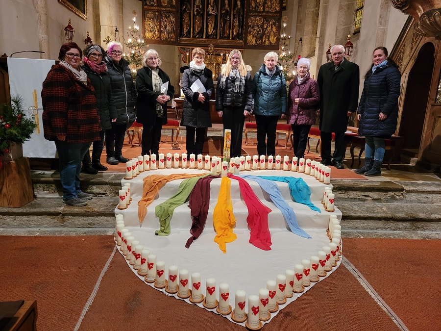 Diese besondere Feier wurde von den Caritas-Beauftragten jeder Pfarre unter der Leitung von PASs Sabine Latzenhofer würdevoll gestaltet. Für jeden Verstorbenen wurde eine persönlich angefertigte Gedenkkerze entzündet, ein stilles Zeichen der Erinnerung und Verbundenheit. Der Kirchenchor Schönbach unter der musikalischen Leitung von Michael Hammerl schenkte mit berührender Musik Trost und Zuversicht. Für die Familien der Verstorbenen ein Ort der Begegnung des Trostes und gemeinsamen Gedenkens. In der Pfarre Gutenbrunn mussten wir im Jahr 2025 von Gisela Brandstätter, Margaretha Hofer, Erika Strommer, Josef Wagesreither, Rudolf Weißensteiner, Siegfried Grötz, Manfred Saxenhammer, Elfriede Pönisch, Edeltraud Rosenkranz, Hubert Hackl, Zäcilia Wallmüller, Karoline Freistetter, Hubert Hackl, Josef Schroll, Anna Hofer und Ingrid Dworacek Abschied nehmen.