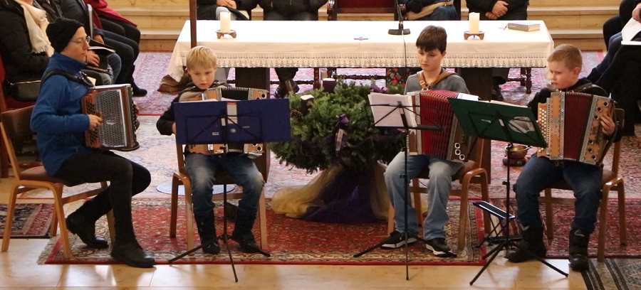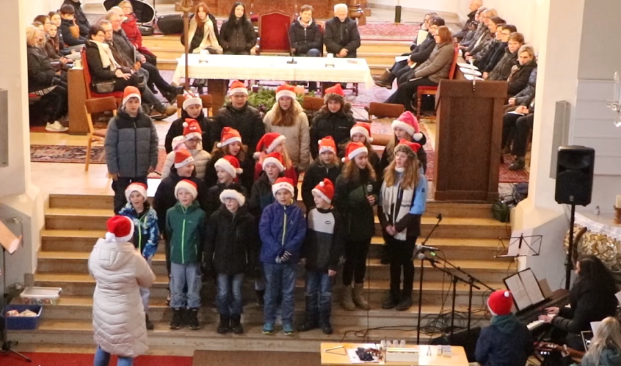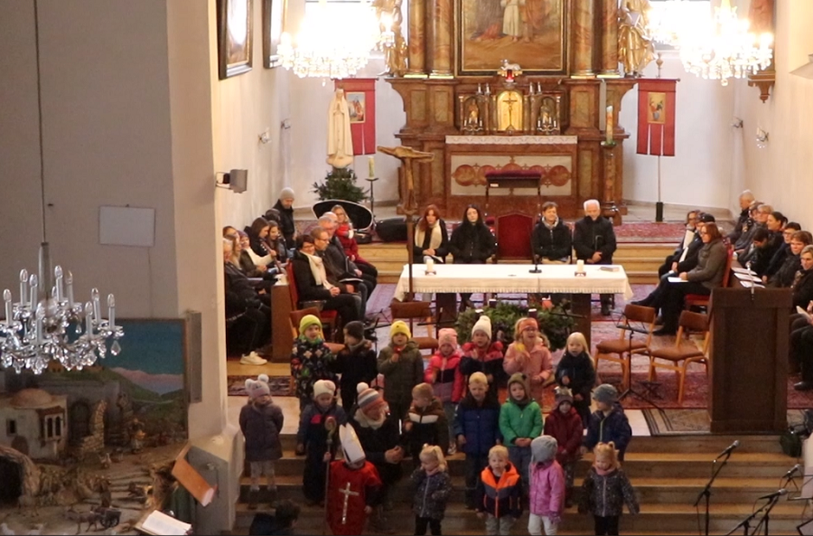 Die Kindergartenkinder, Schülerinnen und Schüler der Volks-, Mittel- und Musikschule sowie der Kirchenchor stimmten die zahlreichen Zuhörer mit adventlichen und weihnachtlichen Weisen auf das Weihnachtsfest ein.