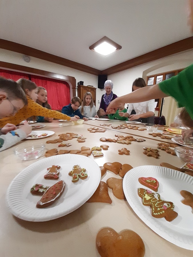 Anschließend durften die Ministranten ihrer Kreativität freien Lauf lassen. Mit verschiedenen Spritztüten und Farbstoffen verzierten sie die Lebkuchen in kunstvolle Muster und weihnachtliche Motive. Die Kinder zeigten viel Geduld und Geschick, um ihre Lebkuchen zu wahren Kunstwerken zu verwandeln. Frau Grünstäudl stand ihnen dabei mit wertvollen Tipps und Anleitungen zur Seite, sodass jedes einzelne Lebkuchenstück ein echtes Meisterwerk wurde.