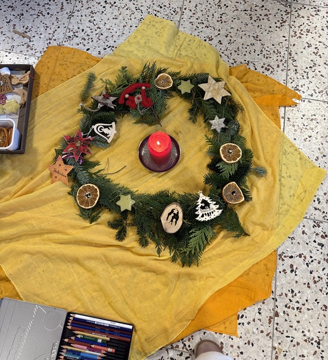 Wir haben uns zusammengesetzt und überlegt, was denn eigentlich so toll am Advent ist, woran wir merken, dass Vorweihnachtszeit ist und worauf wir uns am meisten freuen. Bei dieser Gelegenheit haben wir gemeinsam einen schönen Adventkranz gelegt. Die erste entzündete Kerze, erinnerte uns daran, dass Jesus das Licht der Welt ist, und mit jedem Lichtchen kamen wir ihm ein Stück näher.