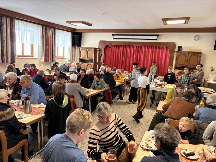 Im Anschluss an die Messe folgten zahlreiche Pfarrmitglieder der Einladung zum Pfarrkaffee. Bei köstlichen Mehlspeisen wurde gemütlich beisammengesessen, geplaudert und gelacht. Besonders schön war es zu sehen, wie viele Gäste nicht nur vor Ort genossen, sondern sich auch die eine oder andere Nachspeise mit nach Hause nahmen.