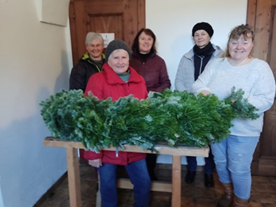 Für das Angebot beim Adventmarkt wurden Türbögen, Adventkränze, Wichtel und Gestecke gebunden und...