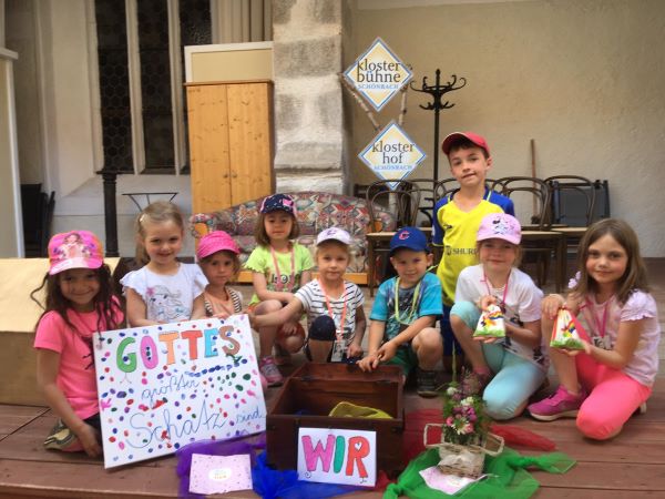 Theresa und Markus Zainzinger organisierten das Kinderprogramm „Gemeinsam suchen wir Gottes größten Schatz!“. Nach erfolgreicher Schatzsuche gab es ein gemeinsames Würsterlgrillen im Pfarrergarten.
