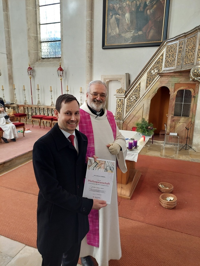 Besonderer Dank galt Organist Michael Hammerl, der Koordinator und auch "Motivator" dieses Projektes war. Ihm wurde für seinen unermüdlichen Einsatz sowie für die herausragende Förderung der Kirchenmusik von Mod. Gruber eine Orgelpfeifen-Patenschaft überreicht.