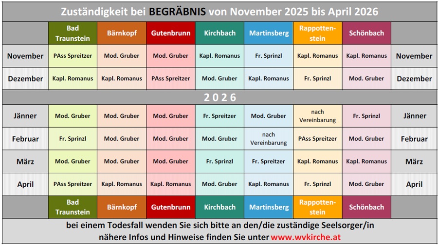 und übernehmen ab 1. Juli 2021 für Begräbnisse, gemäß der aktuellen Einteilung, die Begräbnisleitung